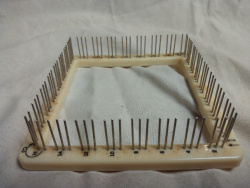 The predominant pin looms are 4 inch squares with the pins in a grouped 3 pin arrangement with 24 pins per side.